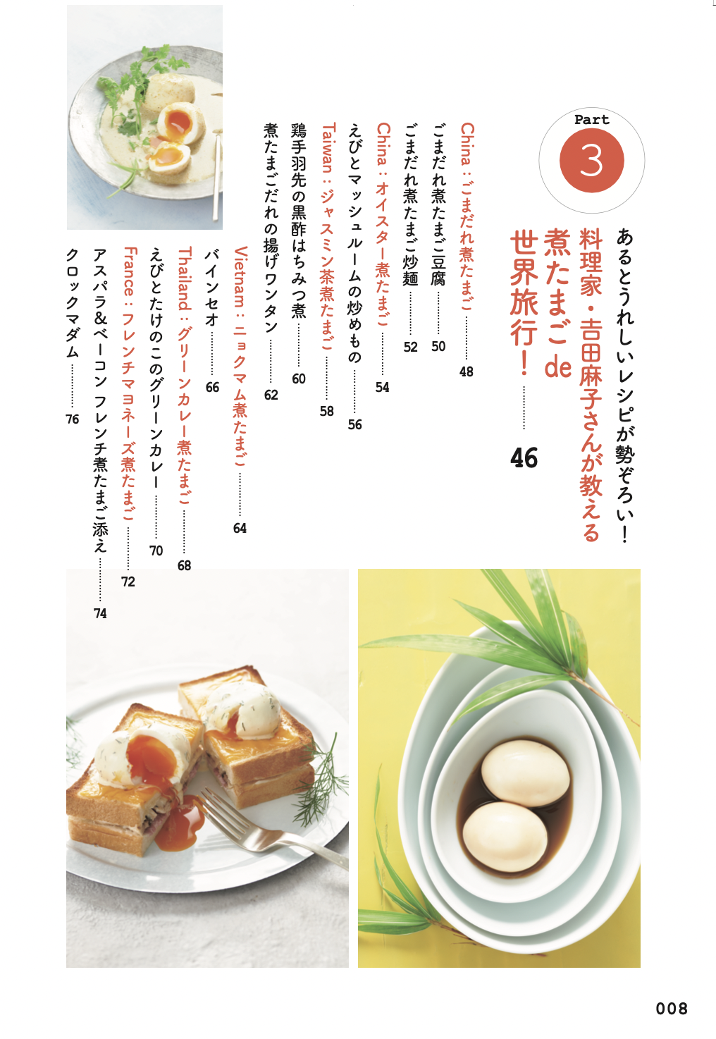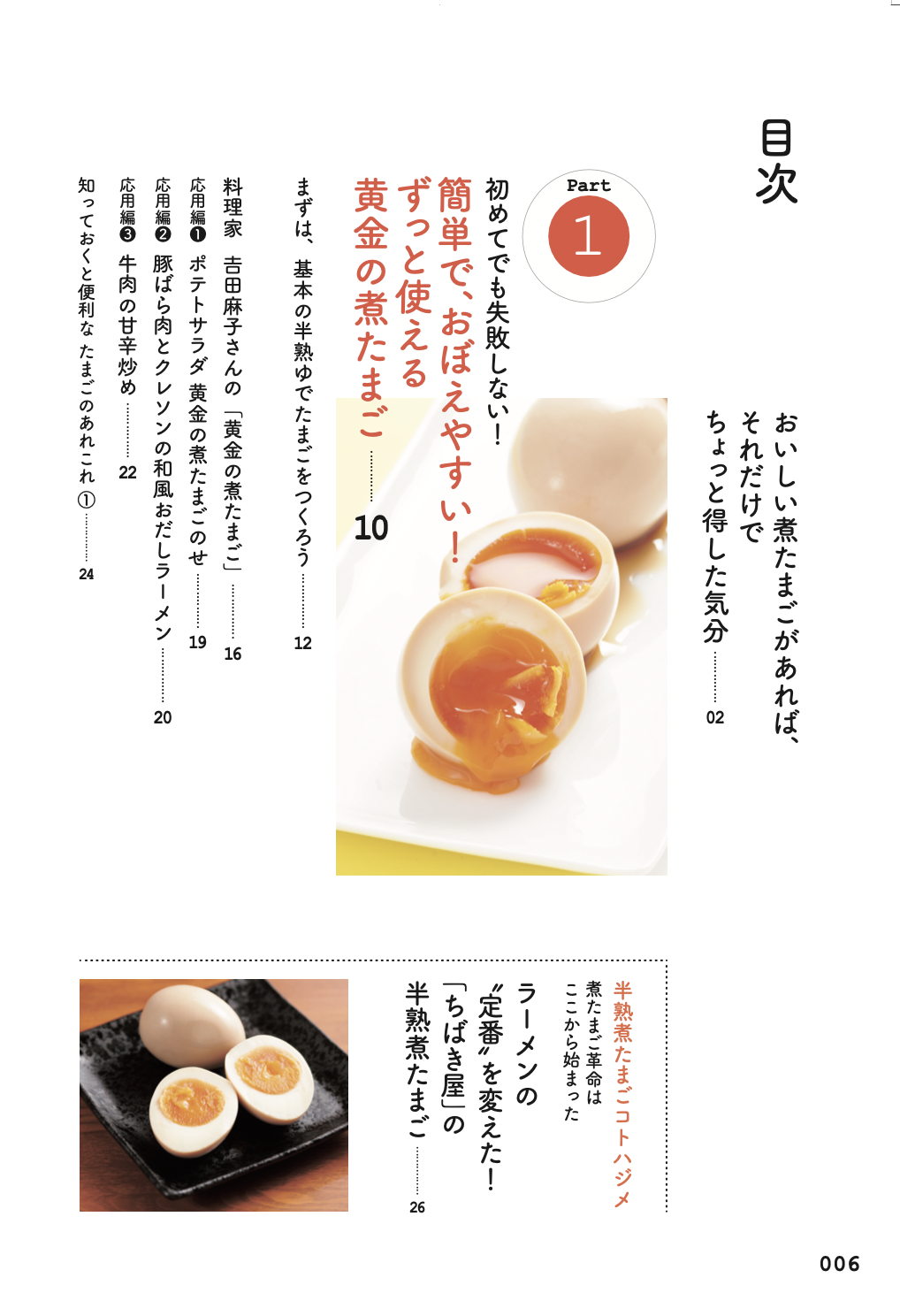 誰でも簡単に作れて、やみつきになること請け合いの「黄金の煮卵」レシピから、ラーメン屋店主・バーのマスターやミシュラン二ツ星シェフまで名だたる料理人が本書の為に考案した、とっておきの煮卵&アレンジレシピ、さらには厳選された世界各国のアレンジレシピも多数収録。
